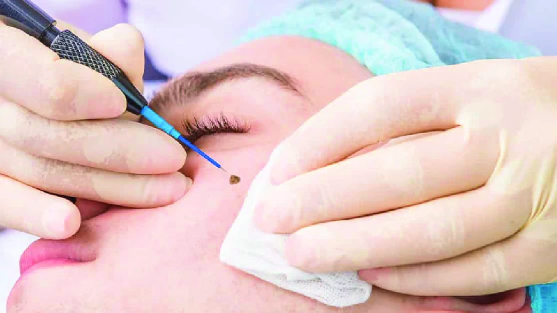 A medical device that uses high-frequency electrical current to treat benign skin lesions such as skin tags, warts, seborrheic keratoses, and angiomas.